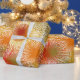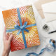 Este papel de embrulho tem um design de boho de estórias em gamboge (ouro), vermelho, baga e verde.