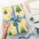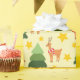 "Starry Woodland Christmas Reindeer Yellow Seamless Wrapping Paper" combina renas, estrelas e árvores em um design que evoca a beleza pacífica de uma noite de Natal nevada.
