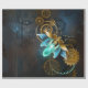 Barbeiro véu com asas transparentes azuis e lâmpada verde sobre fundo vestido, marrom, texturizado. Estilo Steampunk.