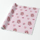A pattern of a cute girl, flowers and hearts on a pink background.