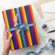 Vermelho, laranja, amarelo, verde, azul, índigo, violeta: as cores do arco-íris são apresentadas em faixas verticais nesse design. A sequência festiva do arco-íris se repete através da design. Imagem de pixel 8800 x 5200 criada digitalmente. Copyright ©2011 Claire E. Skinner, Todos os direitos reservados.
