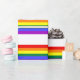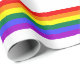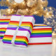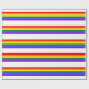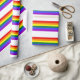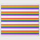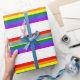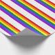 Este papel de empacotamento colorido personalizado apresenta um padrão de stripe arco-íris. As cores típicas do arco-íris, vermelho, laranja, amarelo, verde, azul e roxo, são impressas em um padrão listrado sobre um fundo branco sólido.