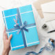 Papel De Presente Stripes de Gradiente em Praças Azuis