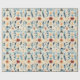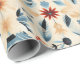 Sudoeste embrulhando papel em azuis e terracota desérticos, destacado por flores pintadas em vermelho, azul e marfim.