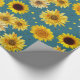High quality, heavy-duty wrapping paper with sunflowers design in a seamless repeating pattern. The big yellow garden flowers are printed over a cool, gray-blue. Choose any roll length, with paper that comes in matte or glossy finishes.