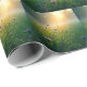 A luz do sol banha um campo matinal com flores silvestres roxas lançando um brilho sereno e quente