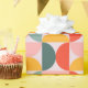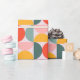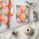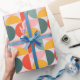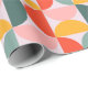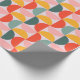 The paper features a large-scale, mid-century modern geometric pattern consisting of half moons. The design uses a coordinated mix of muted coral, sunny mustard yellow, and sage green set against a soft lavender or pale pink background. Perfect for birthdays, holidays, or everyday gifting, this design adds a joyful pop of color to any present—no extra embellishments needed.