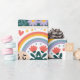 Enrole seus presentes com uma mensagem de entendimento e apoio. Este papel de embrulho apresenta a frase elevatória "Está tudo bem sentir todos os sentimentos" ao lado de um arco-íris colorido, corações e designs florais brancos. É perfeito para quem precisa de um lembrete de que as suas emoções são válidas. Dê um presente que seja bonito e significativo.