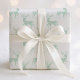 Papel De Presente Sutil Mint Green Watercolor Reindeer
