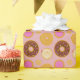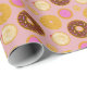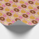 A seamless doughnut pattern wrapping paper with five different kinds of doughnuts.