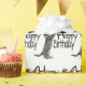 Tabby cat brincando com texto de aniversário em branco. A cor de fundo pode ser alterada.