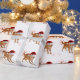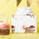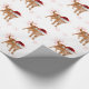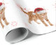 Um adorável Gato Laranja Tabby vestido para o feriado de chapéu bonitinho de Papai Noel e rodeado por estampas de pata e flocos de neve feitos em tons rosas e vermelhos fazem este papel de embrulho de Natal para o amante de gatos na sua lista um pouco feminino, mas não se preocupe com caras, ele vem em tons de verde também.