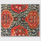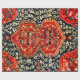 A design de um tapete oriental é impressa neste papel de embrulho, com uma ilustração do livro publicado em 1922 "Oriental Rugs, Antique e Moderno", editado e aplicado por Alma Wad. Esta design apresenta um tapete Oushak, famoso pelo seu campo central azul profundo, medalhões vermelhos ricos e folhas amarelas ouros, que lembra os tapetes tecidos na Ásia Menor durante os séculos XV e XVI. Essas cores vibrantes contrastam com as mais moderadas cores tipicamente encontradas nos tapetes persas. Cortesia das Imagens do Livro de Arquivamento da Internet.