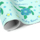 Este papel de embrulho de chá de fraldas apresenta uma tartaruga fofa debaixo do design marinho. Personalize-o com um nome.