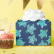 O fundo é um azul escuro, porém você pode o mudar clicando a relação da personalização.