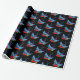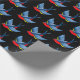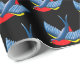 Arte tradicional de tatuagem azul e vermelha engolida em pano de fundo de preto.