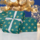 Papel De Presente Teal de Natal Festivo e Dourada Margarida