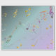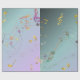 A dreamy gradient wrapping paper featuring multicolored and gold music notes on a teal-to-lavender background. Perfect for artistic gifting, music enthusiasts, concerts, birthdays, and creative packaging.