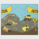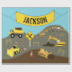Óptica ilustração de um tema de construção e caminhões. Os veículos de transporte de caminhões de construção incluem caminhão de aterro, escavadora, escavadora, escavadora, escavadora, escavadora, escavadora, grua e carregador de front-end. O design perfeito para caminhões, entusiastas de maquinaria pesada, rapazes e raparigas. Presente de Natal ideal, presente de aniversário, decoração infantil, arte de quarto infantil, decoração doméstica ou de volta à escola. Personalize o nome e torne-o seu.