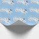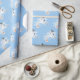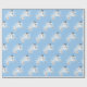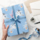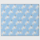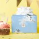 Stork voando em nuvens com bebê em um cobertor sobre fundo azul do céu para presente de bebê. A cor de fundo pode ser alterada.