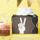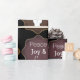 Um presente de Natal divertido e festivo embrulhado com "Paz" em linguagem de sinais e a mensagem "Tenham um Natal divertido" e "Paz, Joy & Love"