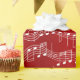 Bares festivos de notas musicais em um fundo vermelho alegre do Natal