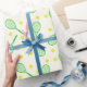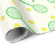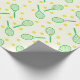 O papel de embrulho para amantes de tênis tem raquetes de tênis verde e bolas de tênis amarelas em um padrão espalhado.