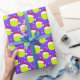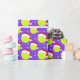 Este papel de embrulho de Natal contém bolas de tênis que vestem Papais noeis com flocos de neve girando em volta de um fundo roxo de Natal.