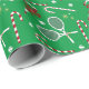 Sempre feliz, doces do Xmas canes com padrão de tema tênis com arcos vermelhos e doces de Natal com menta vermelha, juntamente com raquetes e bolas de tênis. Um tênis de cana-de-açúcar bonitinho e balbucioso, treinador de tênis, amante de tênis, papel de embrulho design de tênis. Decoração e presentes do tema Natal tênis.