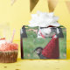 O terrier de Boston com aniversário deseja vestir o chapéu vermelho do partido