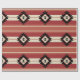 Teste padrão boémio étnico asteca com formas geométricas em cores vermelhas, alaranjadas, cinzentas e pretas em fundo listrado