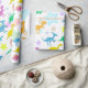 Papel de envolvimento bonito dos dinossauros. O teste padrão bonito com o T-Rex de sorriso feliz, Stegosaurus dos dinos da cor, Parasaurolophus e o Diplodocus com teste padrão de estrelas da cor imprimem o papel de envolvimento do dinossauro para seus presentes de aniversário e presentes de Natal. Este papel adorável do presente do dinossauro dos desenhos animados é inteiramente customizável, personaliza com seu nome, adiciona seus textos e imagens!
