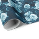 Imagem pelo iMacron | Shutterstock. Identificação da imagem: 494190640% pipe% este teste padrão caracteriza rosas com folhas e um pássaro em um fundo azul escuro.