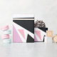 Um rosa feminino artístico, teste padrão abstrato preto e branco dos triângulos. Um design listrado geométrico moderno original das cores pastel no fundo branco. Obtenha a isto cores criativas geométricas do design para o seu ou qualquer um em toda a ocasião.