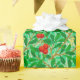 Papel de envolvimento em um teste padrão de matéria têxtil de Nouveau da arte de William Morris de ramos e de folhas de árvore do lychee, nas máscaras do limão e profundamente - verde, acentuadas com frutas vermelhas do lychee e as flores amarelas, em uma luz - fundo verde