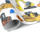 Este papel, com suas ilustrações do divertimento de veículos da construção, sinais, e capacetes de segurança, é grande para contratantes e trabalhadores da construção atuais ou futuros.