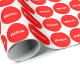 Um papel de envolvimento projetou com um teste padrão de ponto vermelho em um fundo e em um nome brancos. Personalize o papel de envolvimento com seu nome especial ou o texto entre outras opções.