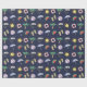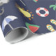 Papel de embrulho temático do feriado azul escuro com colagem ilustrada colorida da praia.