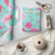 Papel de envolvimento pintado mão do teste padrão floral do primavera da cerceta do rosa cor-de-rosa do vintage. Papel de embrulho doce