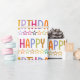 Texto de aniversário feliz colorido e papel de embrulhamento de padrão das estrelas