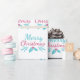 "Texto de Natal Brilhante e Feliz" White Wrapping Paper (Livro Branco sem costura) apresenta turquesa vibrante e texto cor-de-rosa "Feliz Natal", criando um olhar alegre e moderno que traz uma reviravolta para o final das férias.