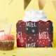 Texto do NÓ branco com flocos de neve em fundo de xadrez de búfalo vermelho e preto. O texto e a cor podem ser editados.