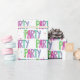 Texto colorido do partido com confete em fundo branco. A cor de fundo pode ser alterada.