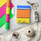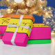 Design alegre e de cor brilhante, com linhas listradas de cores sólidas sobrepostas com texto personalizado. O texto personalizado pode ser personalizado para uma saudação ou nome especial se o doador de presentes ou qualquer outro texto for necessário. Também pode ser removido para um padrão de stripe sem palavras. As cores sólidas são néon-cores claras, cor-de-rosa, amarela, laranja, verde ou azul, intercaladas com linhas pretas finas. Nas fotos eles parecem doces ou doces deliciosos.