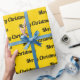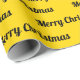 É dezembro e Natal de novo. Uma das estações do ano para receber e dar presentes. A propósito, você está procurando papel de embrulho para embrulhar o presente que você vai dar nesta época de Natal? Você também prefere design de texto simples e simples? Por favor, veja este padrão perfeito de textos de Feliz Natal em papel embrulhado. Você pode gostar. Design são textos pretos sobre fundo amarelo. Esfregando papel para que seu presente pareça apresentável. Feliz Natal!