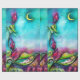 Pintura de aquarela branca, colorida e vibrante em vermelho vivo, rosa,fuchsia,amarelo,azul,verde,cor púrpura .2009. Ilustração para um conto de Andersen. Uma criança pequena que estava nascer numa flor, que dormia numa casca de nogueira, que remava numa folha de tulipa...