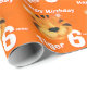 Papel de embrulho de aniversário em design de tigre laranja brilhante. Personalize este grande papel de aniversário de tigre de aquarela com o nome e a idade do seu filho. Atualmente, lê Feliz Aniversário Tiger 6 hoje. © Watercolor art e design por Sarah Trett. www.mylittleeden.com