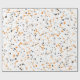 Este papel colorido de embrulho apresenta um padrão terrazzo de laranja e cinza em um fundo branco. Personalize as cores clicando em Editar design.