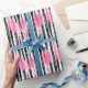 Papel De Presente Tiras de Zebra Negra Branca, Rosa-Rosa