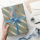 Aqui temos um papel de embrulho que tem tiras diagonais de cobre em uma cor verde-média. Este documento está disponível em vários tamanhos e corresponde a outros papéis de embalagem, papéis de tecidos, sacos de presentes e um cartão de saudação. Isso certamente fará uma adição perfeita aos seus presentes nesta temporada de festas.